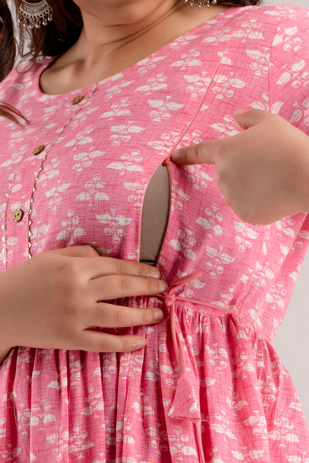 Product Name: Pink Rayon Printed Maternity Gown